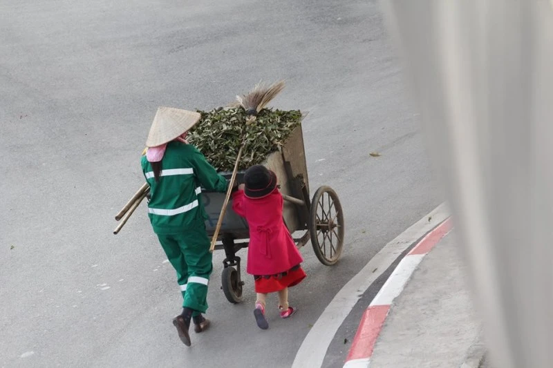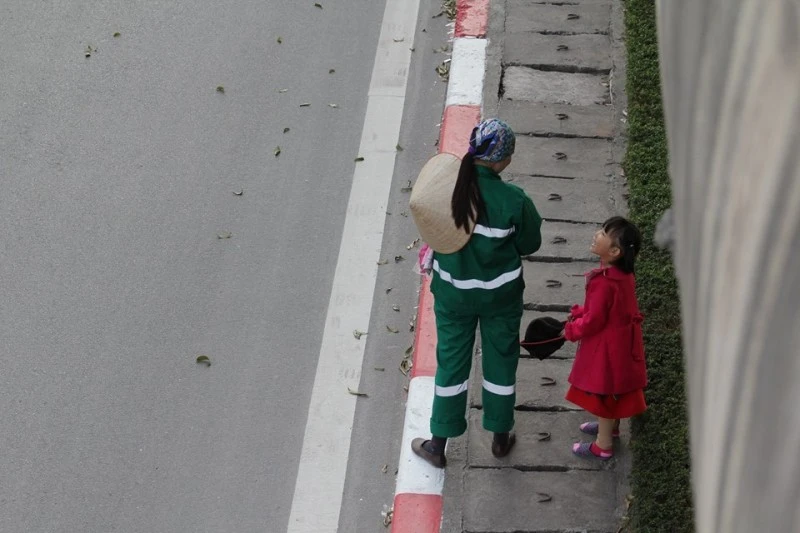 Trao đổi với Báo Pháp luật TP.HCM, anh không giấu được xúc động khi kể lại câu chuyện. “Lúc đó là3h30 chiều. Tôi có việc đi ngang qua chân cầu Vượt, đoạn từ Trung Văn đi vào làng Mễ Trì (Hà Nội), tình cờ nhìn thấy có cô bé nhỏ xíu đang lon ton làm việc cùng mẹ. Tôi quyết định dừng lại chụp mấy bức ảnh, vừa chụp mà ứa nước mắt, cảm xúc khó nói lắm. Ngày này, người ta đi chơi Tết, không thì cũng ở nhà chơi... Vậy mà... Cuộc đời còn có những con người như thế. Chụp xong, tôi đến gần lì xì cho đứa trẻ, cô bé ngơ ngác lí nhí cảm ơn. Bé hồn nhiên lắm!”.