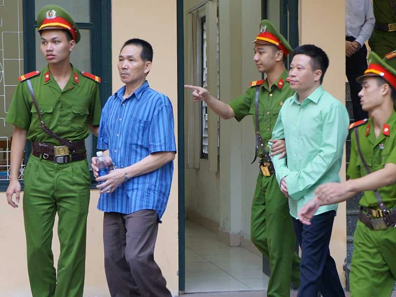 Bị cáo Hà Văn Thắm (phải) và bị cáo Trần Văn Bình. Ảnh: TN