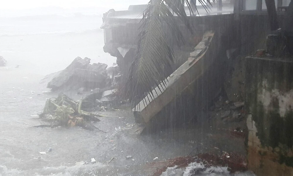 Bờ kè chắn biển bị sóng đánh liên tục.