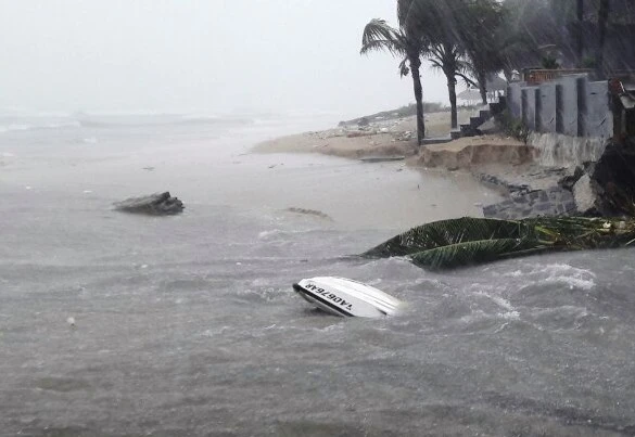 Những cây dừa trồng ven biển bị cuốn trôi.