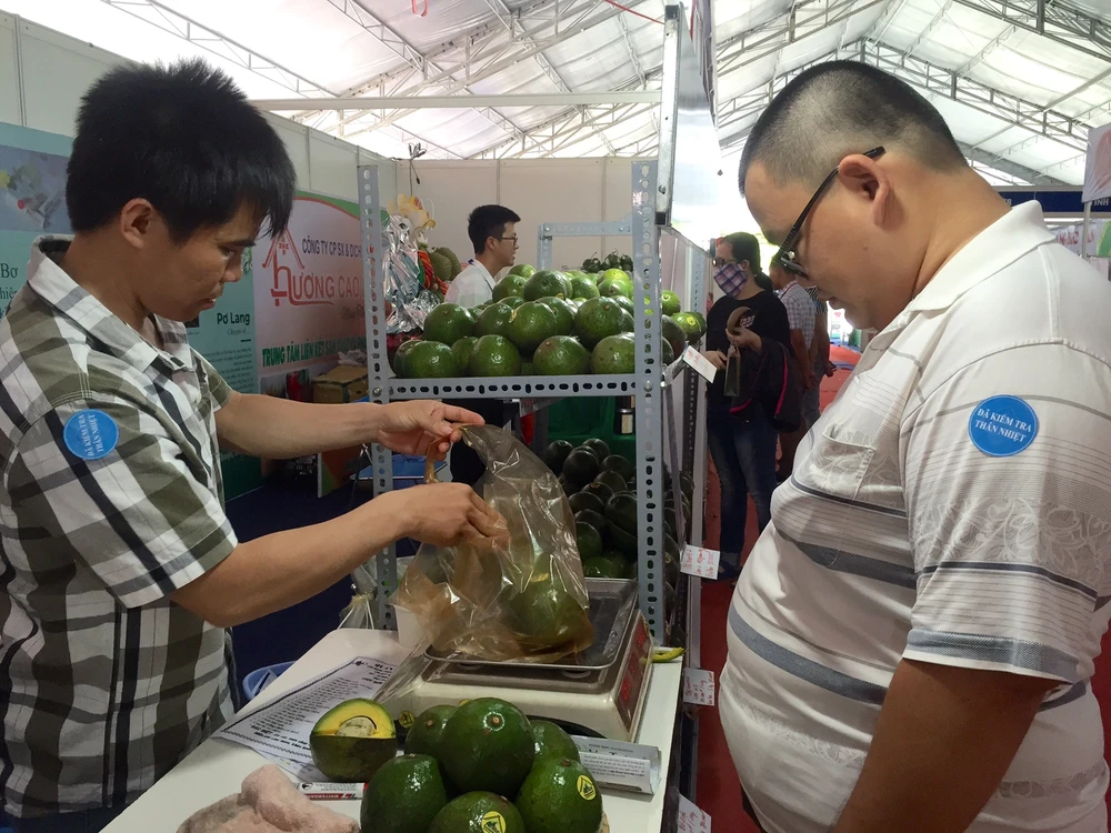 Tại khu vực trưng bày, triển lãm, giới thiệu sản phẩm của các tỉnh thành có gian hàng bơ của HTX Đại Hùng tỉnh Đắk Lắk. Gian hàng ghi rõ thông tin bơ booth 7 loại một trọng lượng 450 gr-700 gr giá 50.000 đồng/kg, loại hai 350 gr-440 gr giá 40.000 đồng/kg và bơ booth loại xô giá 20.000 đồng/kg, 5 kg giá 80.000 đồng.