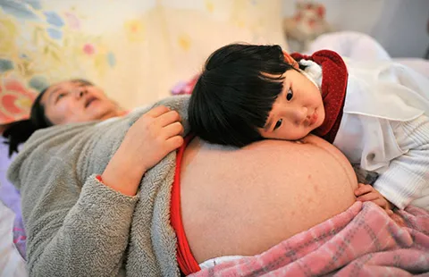 Li Yan đang mang thai đứa con thứ hai. Gia đình của cô là một trong những hộ đầu tiên được cấp giấy phép cho sinh thêm con thứ hai trong đợt nới lỏng chính sách một con năm 2013. Ảnh: REUTERS