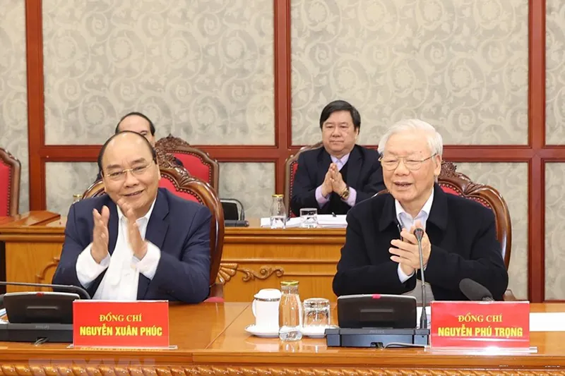 Tổng Bí thư, Chủ tịch nước Nguyễn Phú Trọng và Thủ tướng Nguyễn Xuân Phúc tại phiên họp. Ảnh: TTXVN