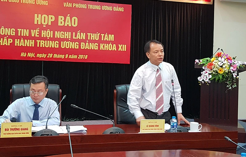 Cũng tại buổi họp báo, Phó chánh Văn phòng Trung ương Lê Quang Vĩnh xác nhận Hội nghị Trung ương 8 sẽ xem xét, thi hành kỷ luật một nguyên Ủy viên Trung ương.