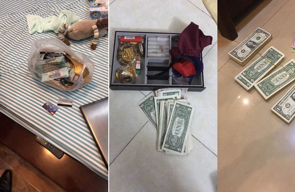 Cảnh sát thu giữ lượng tang vật lớn gồm 500 triệu đồng, 900 USD, ba ô tô và nhiều tang vật có liên quan khác.