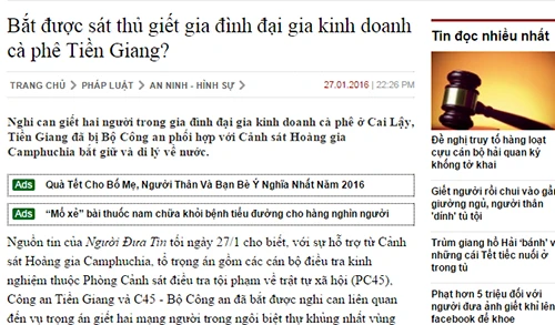 Liên quan đến vụ án, một số trang mạng cho hay là nghi can giết hai người trong gia đình đại gia kinh doanh cà phê ở Cai Lậy, Tiền Giang đã bị Bộ Công an phối hợp với Cảnh sát Hoàng gia Camphuchia bắt giữ và di lý về nước. Các trang mạng này cũng đăng tin là sau khi bắt giữ, công an di lý nghi phạm về Tiền Giang điều tra…