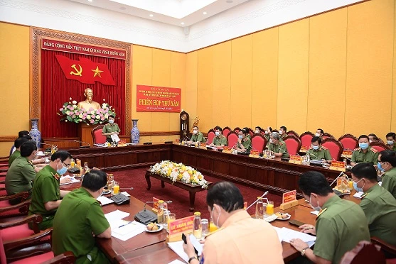 Trung tướng Tô Ân Xô, Chánh Văn phòng Bộ Công an, thay mặt Thường trực Tiểu ban trình bày báo cáo tóm tắt các mặt công tác trọng tâm được triển khai từ sau Phiên họp thứ tư đến nay.
