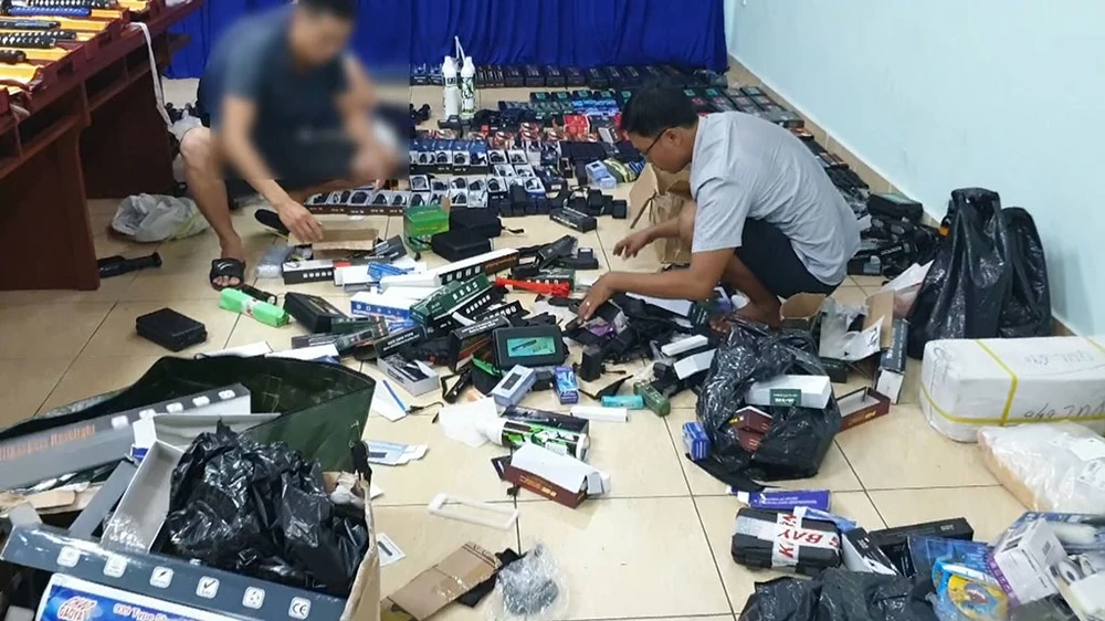Mới đây, cảnh sát đồng loạt ập vào một căn nhà là nơi cư trú của Trí và Lập ở quận Gò Vấp (TP.HCM) và một điểm tập kết hàng, phát hiện 3.500 tang vật trong đó có nhiều kiếm Nhật, súng thể thao bắn tầm xa, súng bắn đạn nổ đầu bi, hàng chục kilogam đạn chì, 150 bình xịt hơi cay, trên 300 đèn pin chích điện các loại...