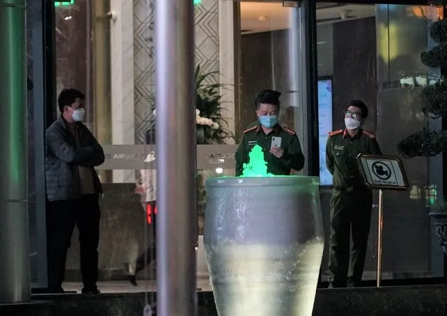 Công an khám xét tại tòa nhà FLC Cầu Giấy hôm 29-3. Ảnh: PHI HÙNG