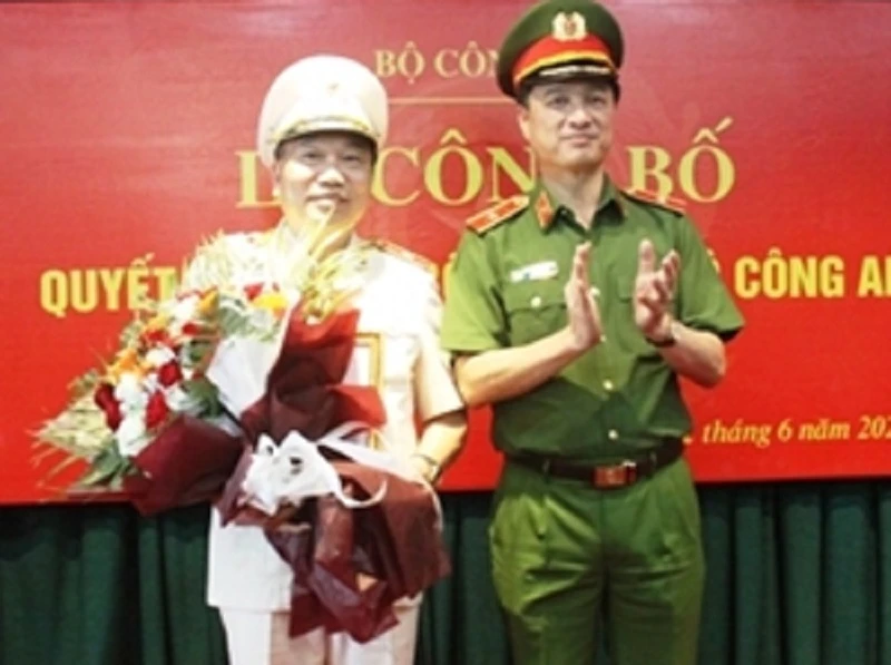 Thiếu tướng Tô Văn Huệ (trái) được bổ nhiệm giữ chức vụ Cục trưởng Cục Cảnh sát Quản lý hành chính về trật tự xã hội. Ảnh: VGP