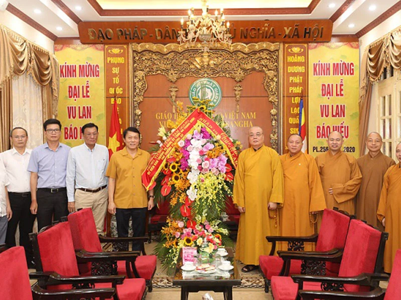 Đoàn công tác của Bộ Công an chụp ảnh lưu niệm với đại diện Giáo hội Phật giáo Việt Nam. Ảnh: bocongan.gov.vn