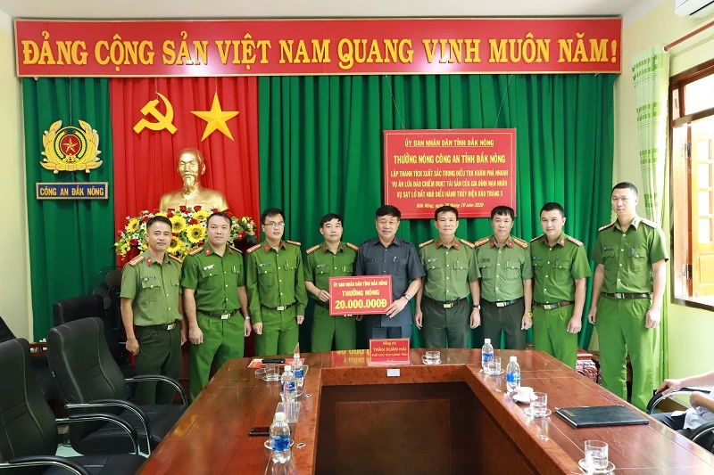 Trước đó, ngày 26-10, ông Trần Xuân Hải - Phó Chủ tịch UBND tỉnh Đắk Nông đã đến động viên và trao thưởng cho Công an tỉnh Đắk Nông 20 triệu đồng.