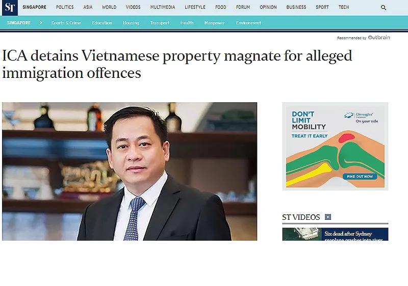 Sau một thời gian, chiều 2-1, tờ Straits Times (Singapore) có đăng bài viết với tiêu đề “ICA (Cơ quan Nhập cư và Hải quan của Singapore) tạm giữ đại gia bất động sản Việt Nam với cáo buộc vi phạm luật nhập cư”.