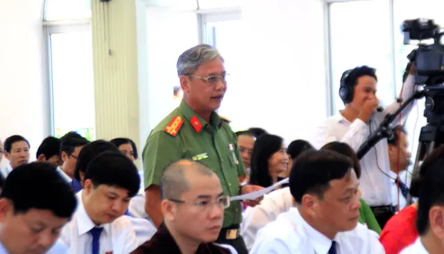 ĐB Lê Thanh Hải, Phó Giám đốc Công an TP Đà Nẵng, trình bày một số vấn đề liên quan đến quản lý người Trung Quốc, Hàn Quốc đến du lịch tại Đà Nẵng. Ảnh : LÊ PHI