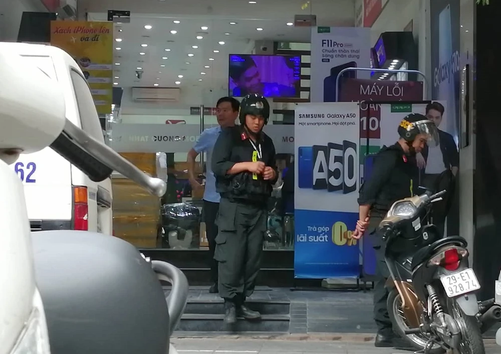 Lực lượng công an khám xét chuỗi cửa hàng của Công ty Nhật Cường. Ảnh: TP