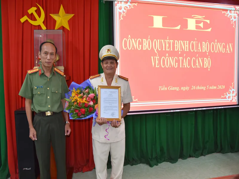 Công an tỉnh Tiền Giang vừa tổ chức lễ công bố các Quyết định của Bộ trưởng Bộ Công an về bổ nhiệm, điều động chỉ huy một số đơn vị nghiệp vụ cấp tỉnh và Công an địa phương.