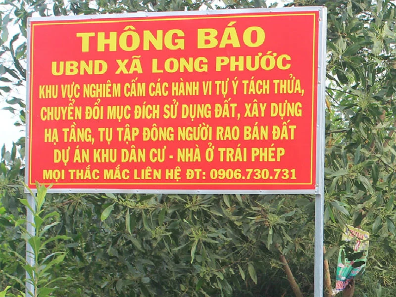 Cơ quan chức năng địa phương cắm biển cảnh báo phân lô bán nền trái phép trên địa bàn huyện Long Thành. Ảnh: VH