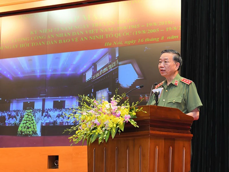 Phát biểu tại buổi gặp mặt, Bộ trưởng Tô Lâm khẳng định quá trình xây dựng, chiến đấu và trưởng thành của lực lượng CAND trong 73 năm qua luôn gắn liền với sự nghiệp cách mạng của Đảng và dân tộc. Qua mỗi thời kỳ, lực lượng CAND ngày càng thực hiện tốt hơn nhiệm vụ bảo vệ và phục vụ nhân dân, bảo vệ Đảng, bảo vệ chính quyền...