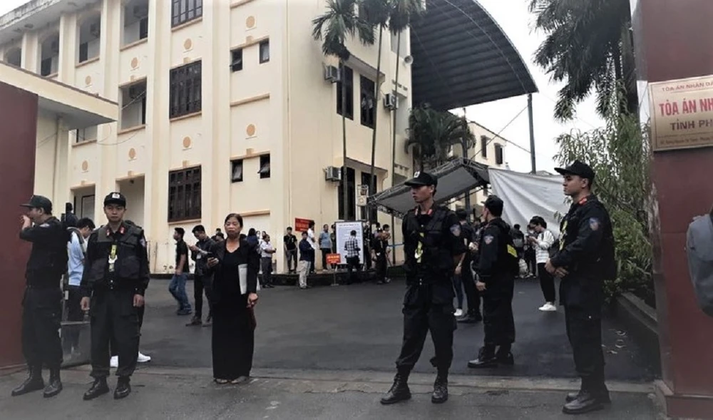 Bảo vệ an ninh tại phiên tòa xét xử vụ án liên quan đến hai cựu tướng công an Phan Văn Vĩnh và Nguyễn Thanh Hóa. Ảnh: TP