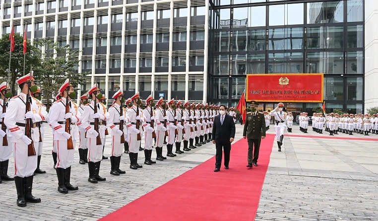 Thủ tướng Chính phủ Phạm Minh Chính duyệt Đội danh dự CAND. Ảnh: BCA