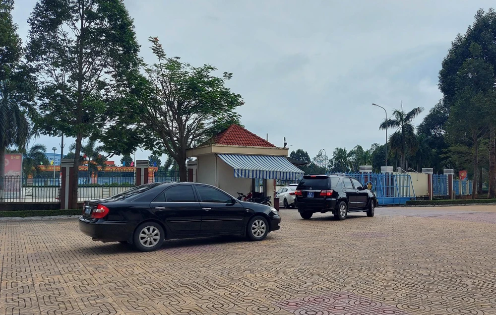 | Ô tô của cơ quan chức năng đậu trong sân trụ sở UBND huyện Đất Đỏ trưa 29-10. Ảnh: K.L |