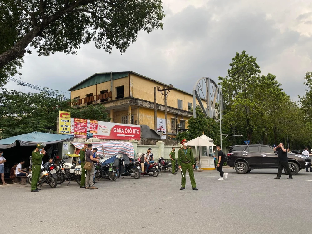 Công an xuất hiện tại khu vực gần nhà ông Chu Ngọc Anh chiều 7-6. Ảnh: NHƯ LOAN