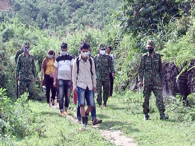 Hàng chục người vượt biên trái phép từ Trung Quốc về Việt Nam bị lực lượng biên phòng Hà Giang phát hiện. Ảnh: Báo Hà Giang