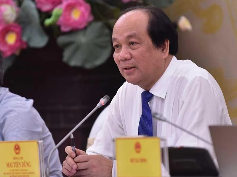 Bộ trưởng, Chủ nhiệm Văn phòng Chính phủ Mai Tiến Dũng chủ trì cuộc họp báo. Ảnh: Đ.MINH