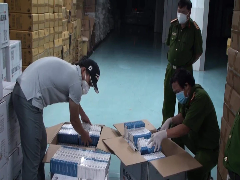 Tiếp tục kiểm tra kho hàng của công ty trên ở phường 6, quận 8 tổ công tác phát hiện 9.200 hộp thuốc cùng loại. Theo cơ quan công an, tất cả số thuốc trên đều không có hóa đơn chứng từ chứng minh nguồn gốc xuất xứ, chưa được đăng ký lưu hành tại Việt Nam.
