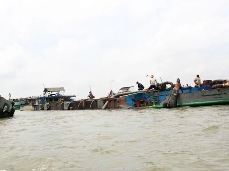 Khai thác cát trên sông Cổ Chiên tại Bến Tre. Ảnh minh họa