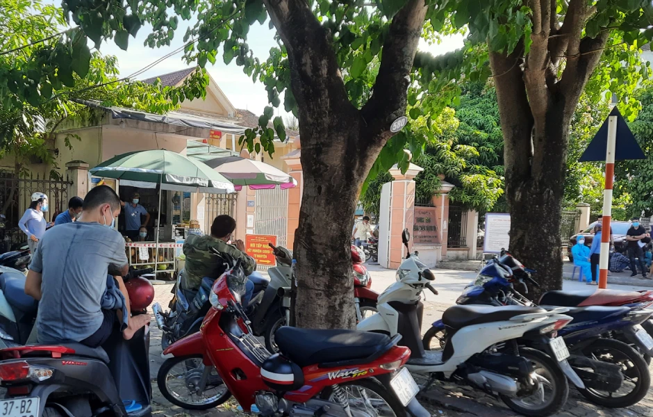 Người dân chờ để vào CDC Nghệ An xét nghiệm COVID-19.