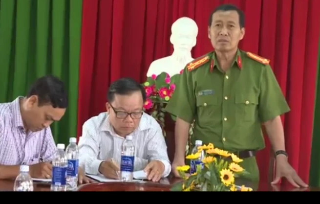 Đại tá Phạm Văn Ngân, Phó Giám đốc Công an tỉnh Vĩnh Long, trong cuộc họp.
