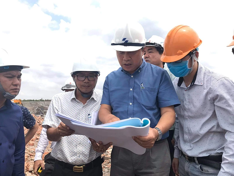 Đoàn công tác của Bộ Xây dựng kiểm tra hiện trường. Ảnh: VŨ HỘI