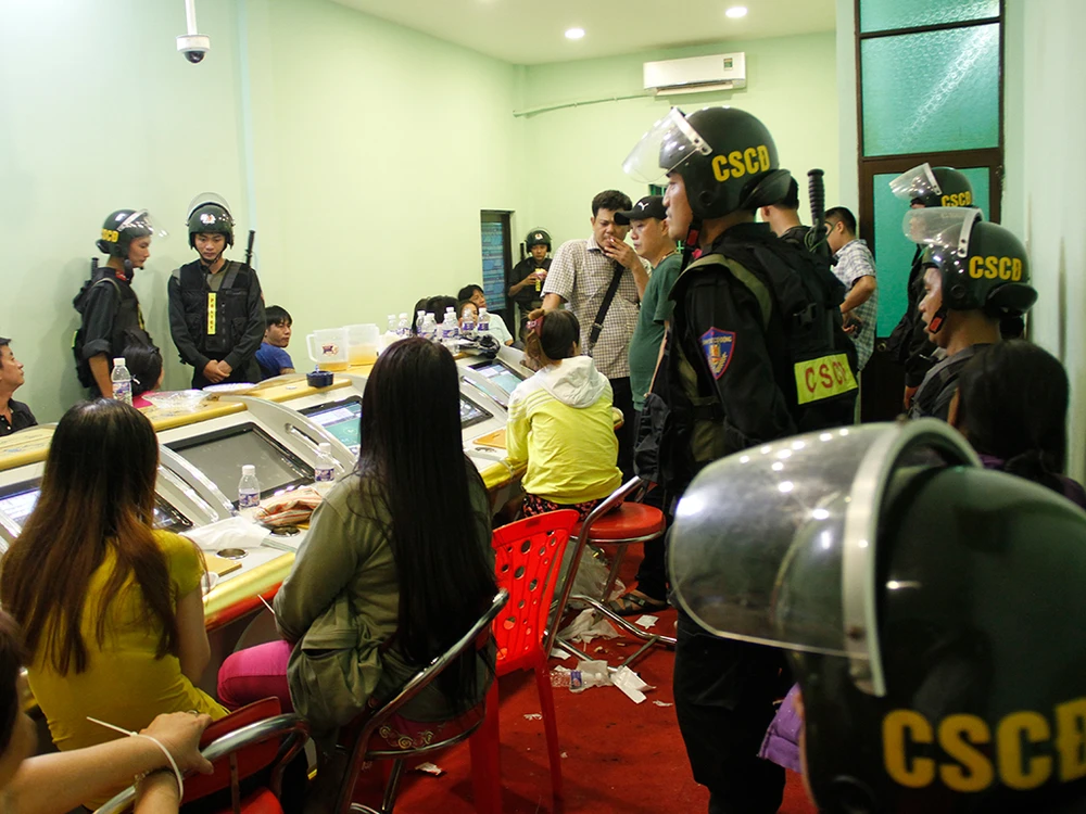Cảnh sát ập vào sới bạc ở trên đường Bà Hạt (quận 10) phát hiện nhiều người đang say sưa sát phạt. Ảnh Nguyễn Tân.