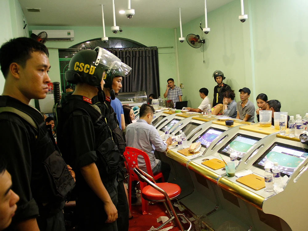 Theo đó, trong căn phòng nhỏ có 18 trụ con sắp thành hai hàng dọc và một máy chủ chia bài. Số tiền đặt các con bạc đặt cược từ 1 triệu đến 10 triệu đồng/ván là tối đa. Tuy nhiên theo một trinh sát, số tiền các con bạc đặt cược có thể cao hơn nhiều nếu thỏa thuận với “nhà cái”, thắng thua sau đó sẽ chia theo tỉ lệ.