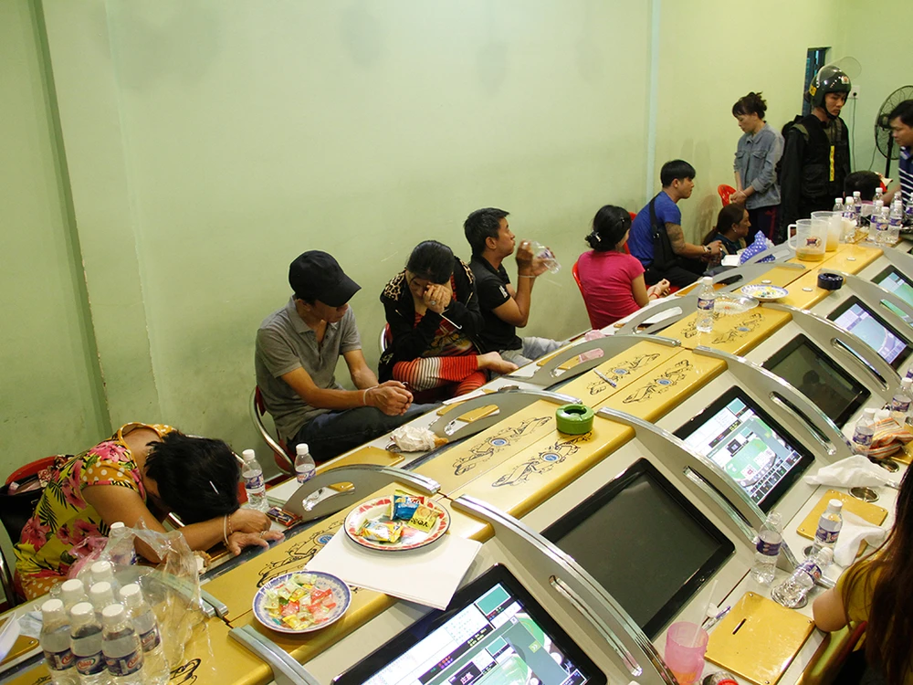 Có 18 máy con đang hoạt động đánh bạc ăn tiền theo kiểu Bacacrat. Ảnh Nguyễn Tân.