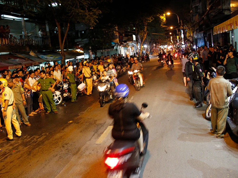 Rất đông người dân hiếu kỳ theo dõi vụ việc. Ảnh Nguyễn Tân.