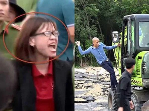 Nguyễn Huỳnh Tú Trinh chỉ đạo nhân viên Công ty Alibaba đập phá xe múc. Ảnh: PLO