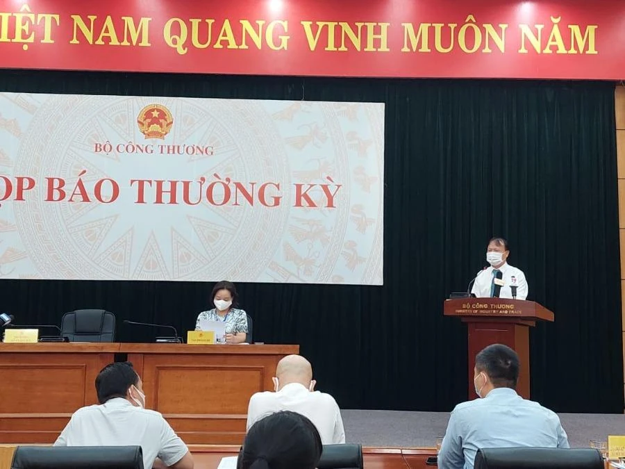 Thứ trưởng Bộ Công Thương Đỗ Thắng Hải thông tin tại cuộc họp báo. Ảnh: AH