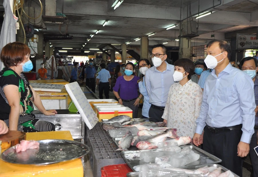 Ngày 21-7, Tổ công tác đặc biệt của Bộ Công Thương do Thứ trưởng Đỗ Thắng Hải trực tiếp chỉ đạo đã đến khảo sát về cung ứng hàng hóa tại chợ Bình Thới (quận 11), chợ Nguyễn Tri Phương (quận 10) và chợ An Đông (quận 5).