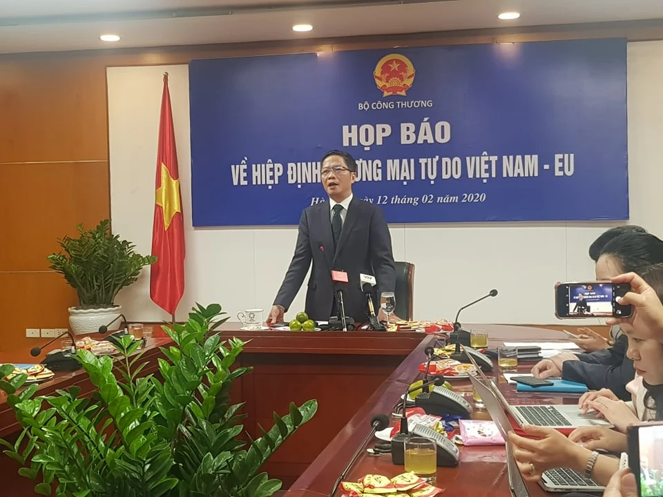 Chiều tối 12-2, Bộ Công Thương tổ chức họp báo thông tin về việc Nghị viện châu Âu (EP) đã thông qua Hiệp định Thương mại tự do giữa Việt Nam và Liên minh châu Âu (EVFTA) và Hiệp định Bảo hộ đầu tư (EVIPA).