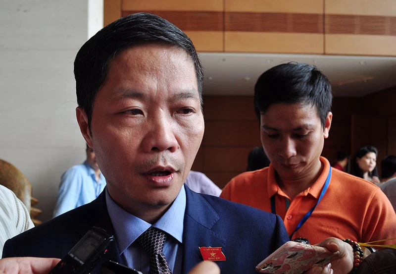 Bộ trưởng Công Thương Trần Tuấn Anh trao đổi với báo chí bên lề Quốc hội vào sáng nay liên quan đến việc xử lý "di sản" của cựu bộ trưởng Vũ Huy Hoàng để lại. Ảnh: Trọng Phú