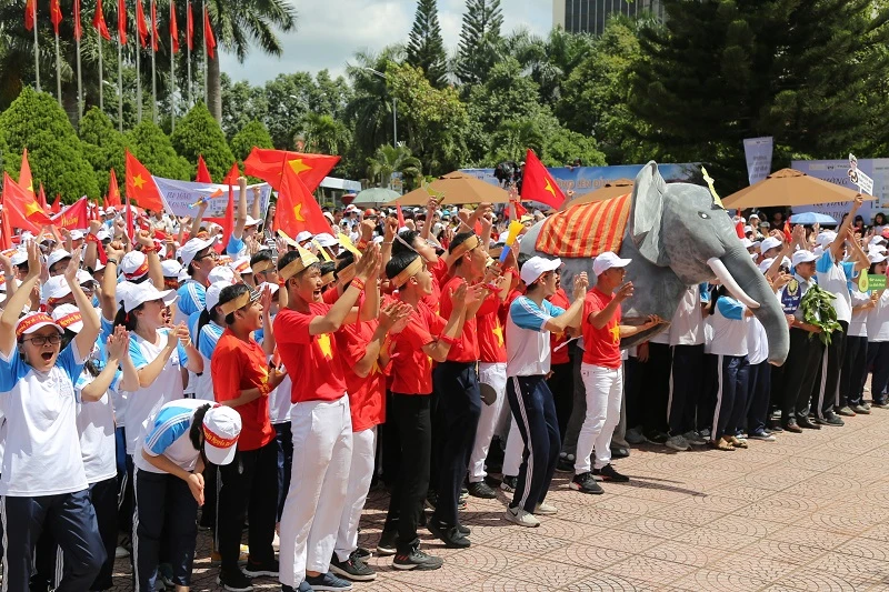 Trong sáng nay, tại đầu cầu Đắk Lắk, hàng ngàn người đã đội nắng đến để cổ vũ động viên cho Đoàn Nam Thắng. Hàng ngàn học sinh từ trên địa bàn tỉnh và người dân “cháy” hết mình với những lời cổ vũ “chú voi con” của Tây Nguyên. Hình ảnh chú voi con ngộ nghĩnh được các bạn bè của Thắng mang đến như tiếp thêm lửa để Thắng vững tin trong các phần thi. Cùng với đó là những màn biểu diễn nhảy sôi động.