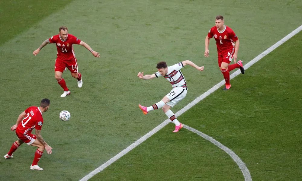 Ngay đầu trận, Bồ Đào Nha sớm tạo được cơ hội nguy hiểm từ cú sút của Diogo Jota trong vòng cấm ở phút thứ 5, tuy nhiên thủ môn Gulacsi đã kịp bay người cản phá thành công cú sút của tiền đạo thuộc biên chế Liverpool.