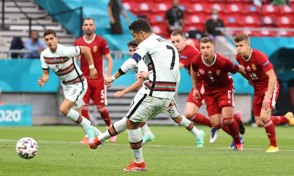 Đến những phút bù giờ, Ronaldo có tình huống di chuyền thông minh để thoát khỏi hàng thủ của Hungary. Đối mặt với thủ môn Gulasic, đội trưởng của Bồ Đào Nha không bỏ lỡ cơ hội ấn định chiến thắng 3-0, đồng thời giúp anh đi vào lịch sử Euro khi trở thành cầu thủ ghi bàn nhiều nhất với 11 bàn thắng.