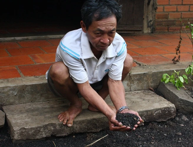 Ông Châu hốt một nắm bọ đen trong tay