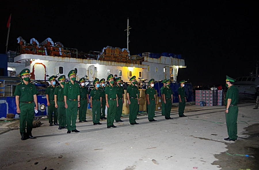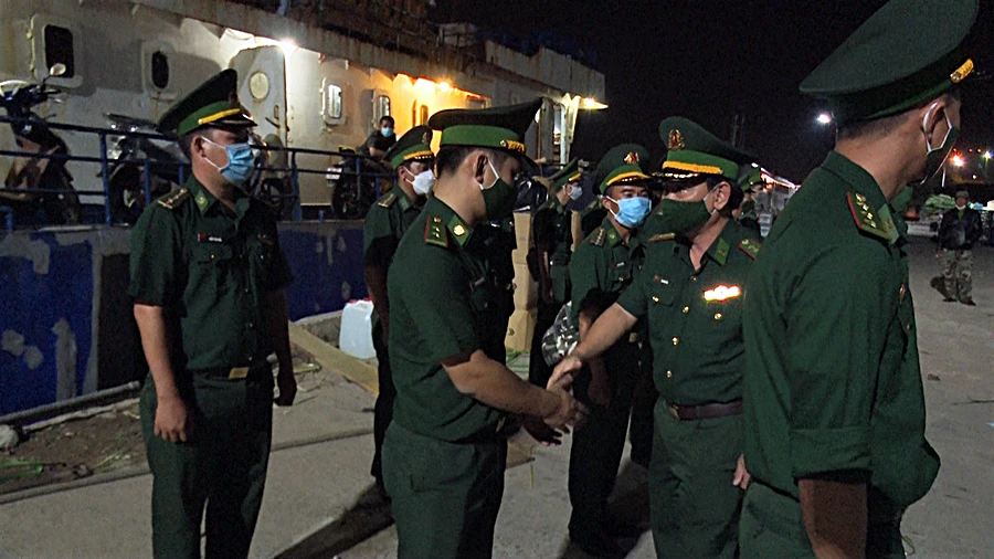 Sáng 14-11, 16 cán bộ, chiến sĩ thuộc Bộ Chỉ huy Bộ đội Biên phòng (BĐBP) Bình Thuận và lực lượng y bác sĩ đã đến cảng Phú Quý để thực hiện nhiệm vụ tăng cường hỗ trợ đảo Phú Quý phòng, chống dịch COVID-19.