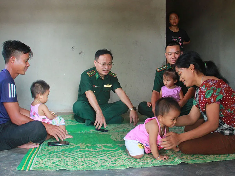 Bộ đội Đồn biên phòng cửa khẩu quốc tế La Lay (Quảng Trị) đến từng hộ dân tuyên truyền công tác phòng, chống dịch Covid-19. Ảnh: LÊ CHUNG