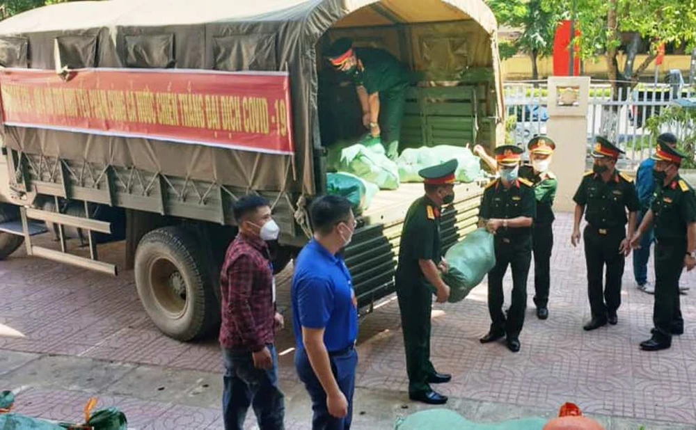 Bộ đội vận chuyển rau, thực phẩm đến giúp người dân TP Vinh. Ảnh: ĐL