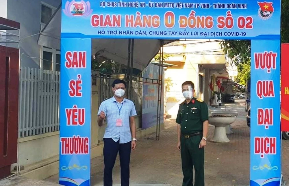 Để hỗ trợ người dân “ai ở đâu thì ở đó”, nhất là bà con khu vực cách ly, phong tỏa, các gia đình có hoàn cảnh khó khăn, Bộ Chỉ huy quân sự tỉnh Nghệ An và Ủy ban MTTQ Việt Nam TP Vinh cùng Thành đoàn TP Vinh tiếp tục triển khai các "Gian hàng 0 đồng".
